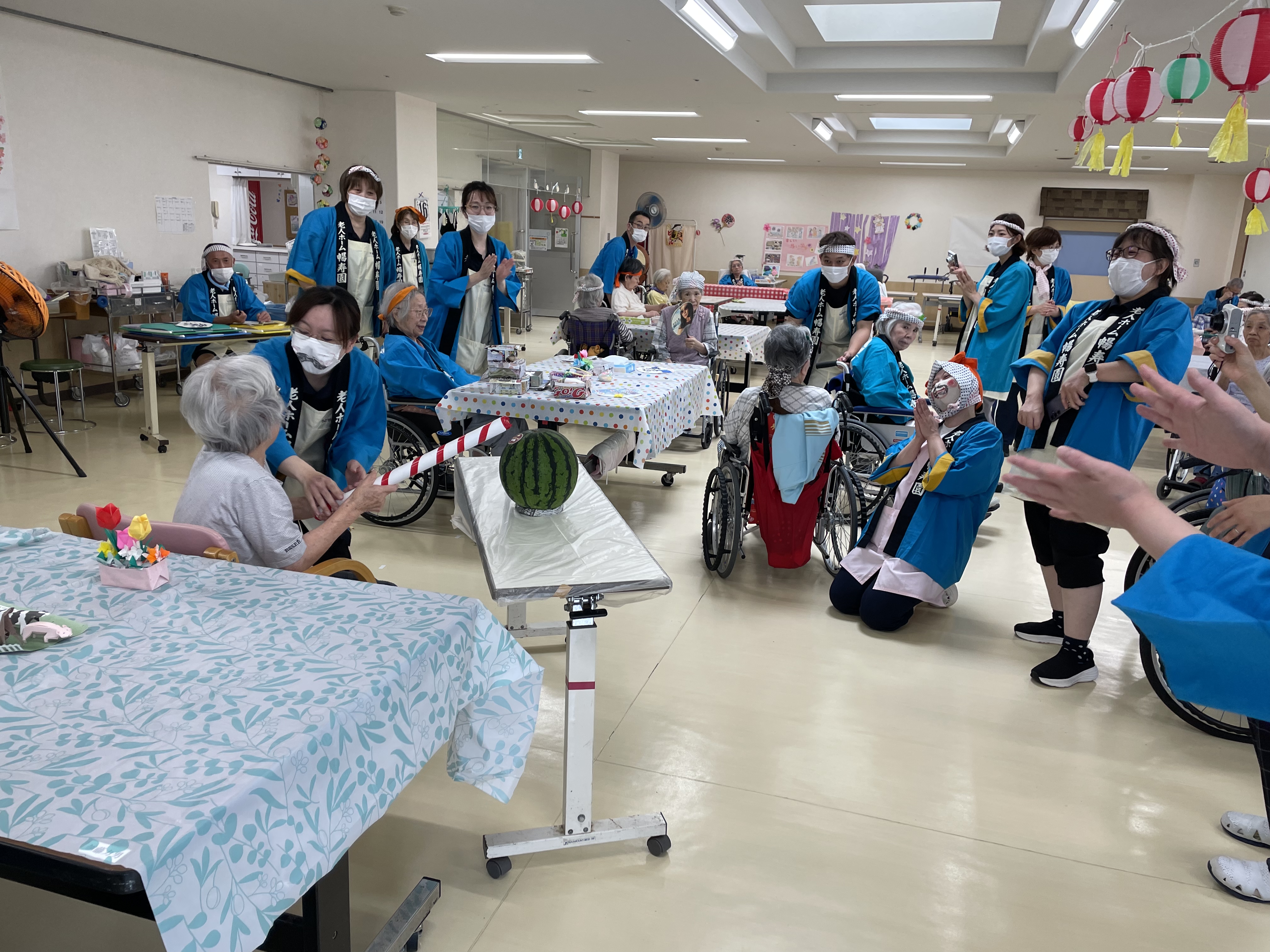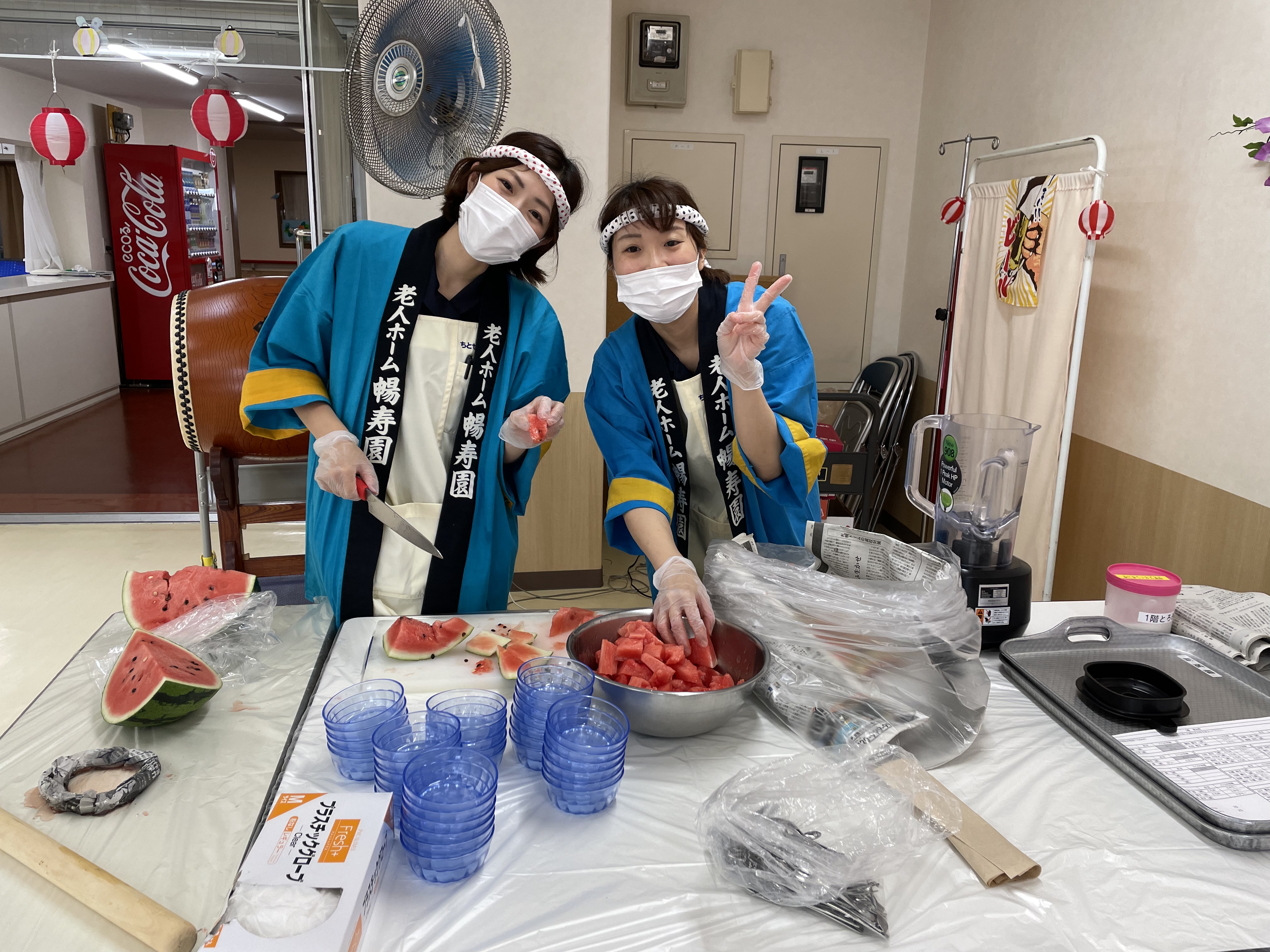 スライドの写真は、暢寿園夏まつり2025の様子です。伝統のある暢寿園らしい職員の活気とパワーが伝わってきます。